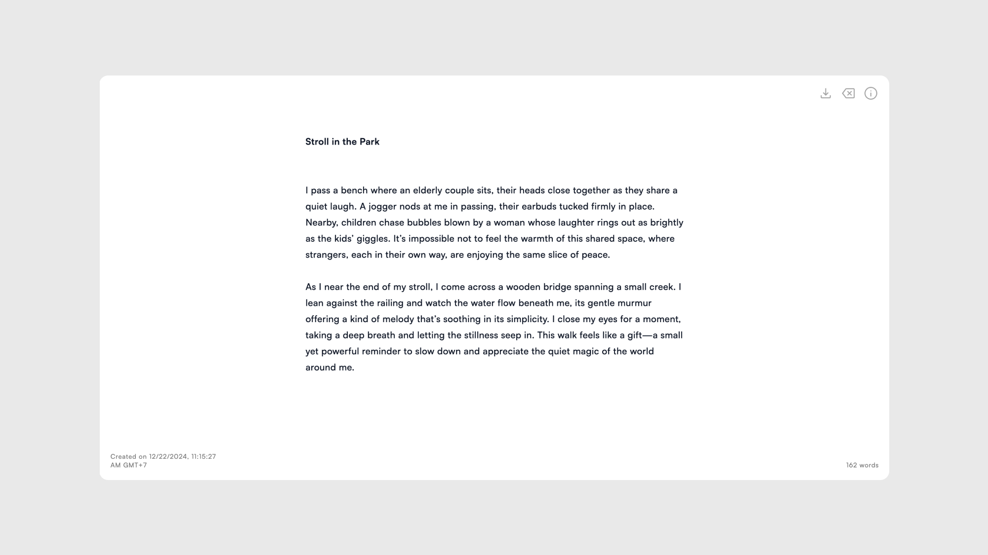 A personal study of creating an alternative for a distraction-free text editor, that allows users to focus on writing without unnecessary interruptions. This project also includes the option to download the content in *.txt, a universally accessible file formats, ensuring compatibility across platforms and operating systems. The downloaded file will mark the date and time when the content is created.